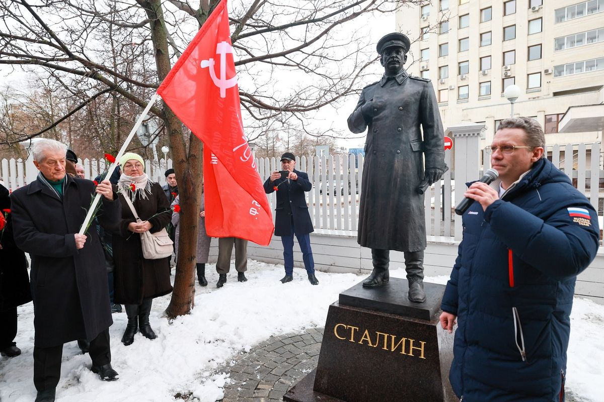 Gubernátor Vologdské oblasti Georgij Filimonov během projevu u příležitosti odhalení sochy sovětského diktátora Stalina loni v prosinci.