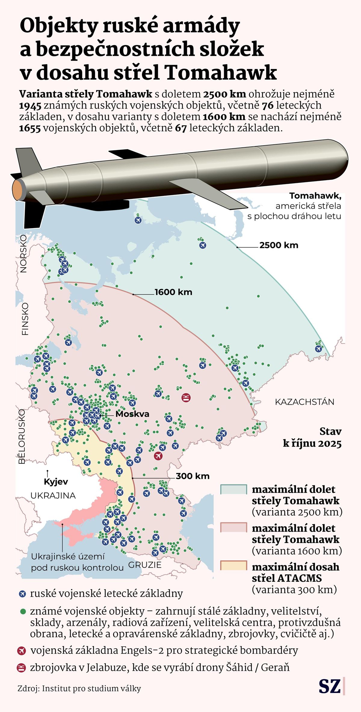 Tomahawky mají dostřel 2500 kilometrů a ruské cíle by ničily více, než tak dosud činí ukrajinské drony. Trumpova slova ale naznačují, že se zřejmě rozhodl zbraně Ukrajině zatím neposkytnout. To později potvrdily i zdroje obvykle dobře informovaného amerického serveru Axios.