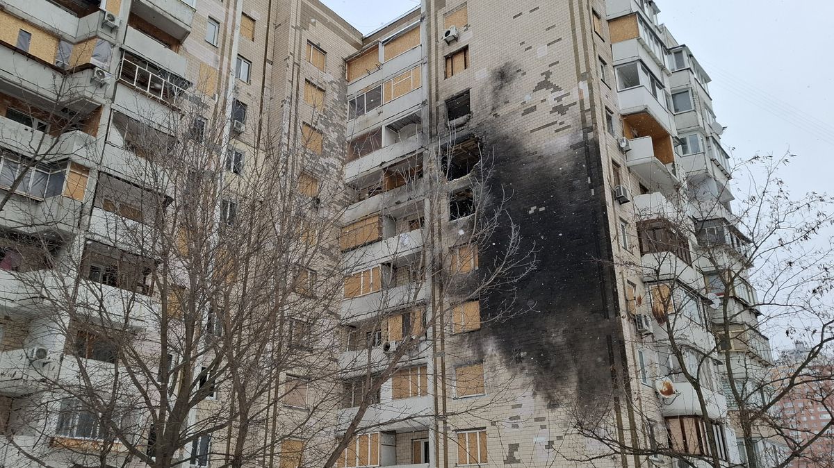 Po cestě do práce mi ukážou panelák, na který před dvěma měsíci dopadl sestřelený ruský dron. Dělníci podepřeli stěny, aby se patro nepropadlo.