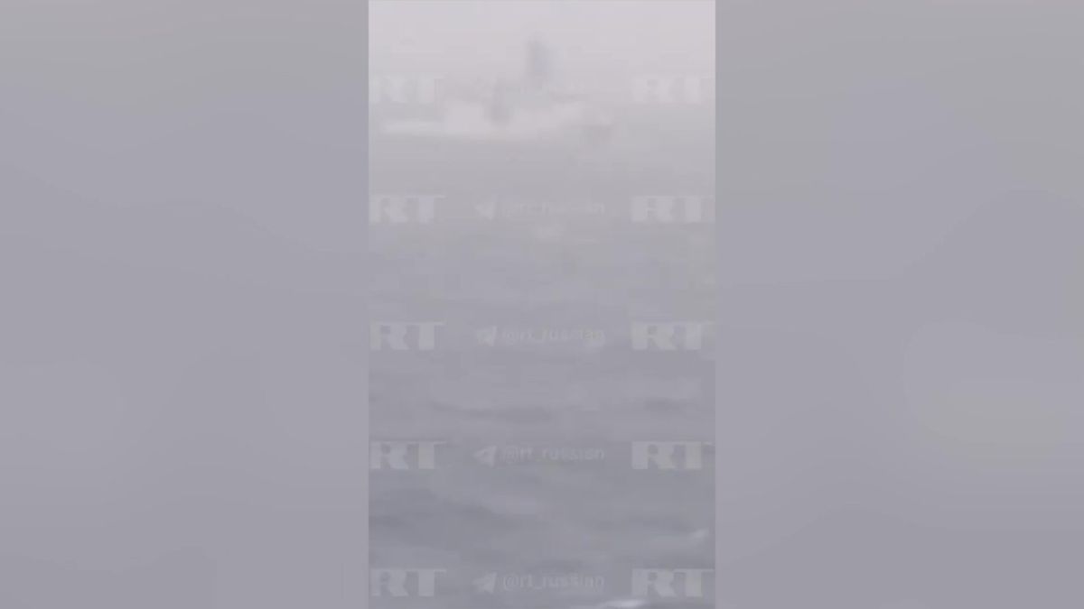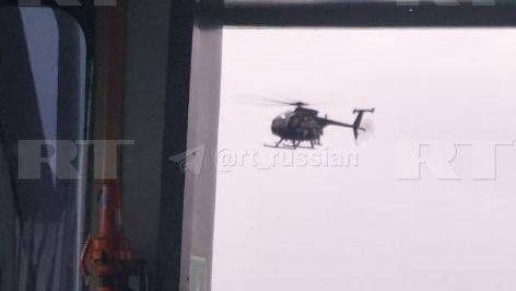 Ruská televize RT zveřejnila snímek vrtulníku, který se vznáší v blízkosti plavidla.