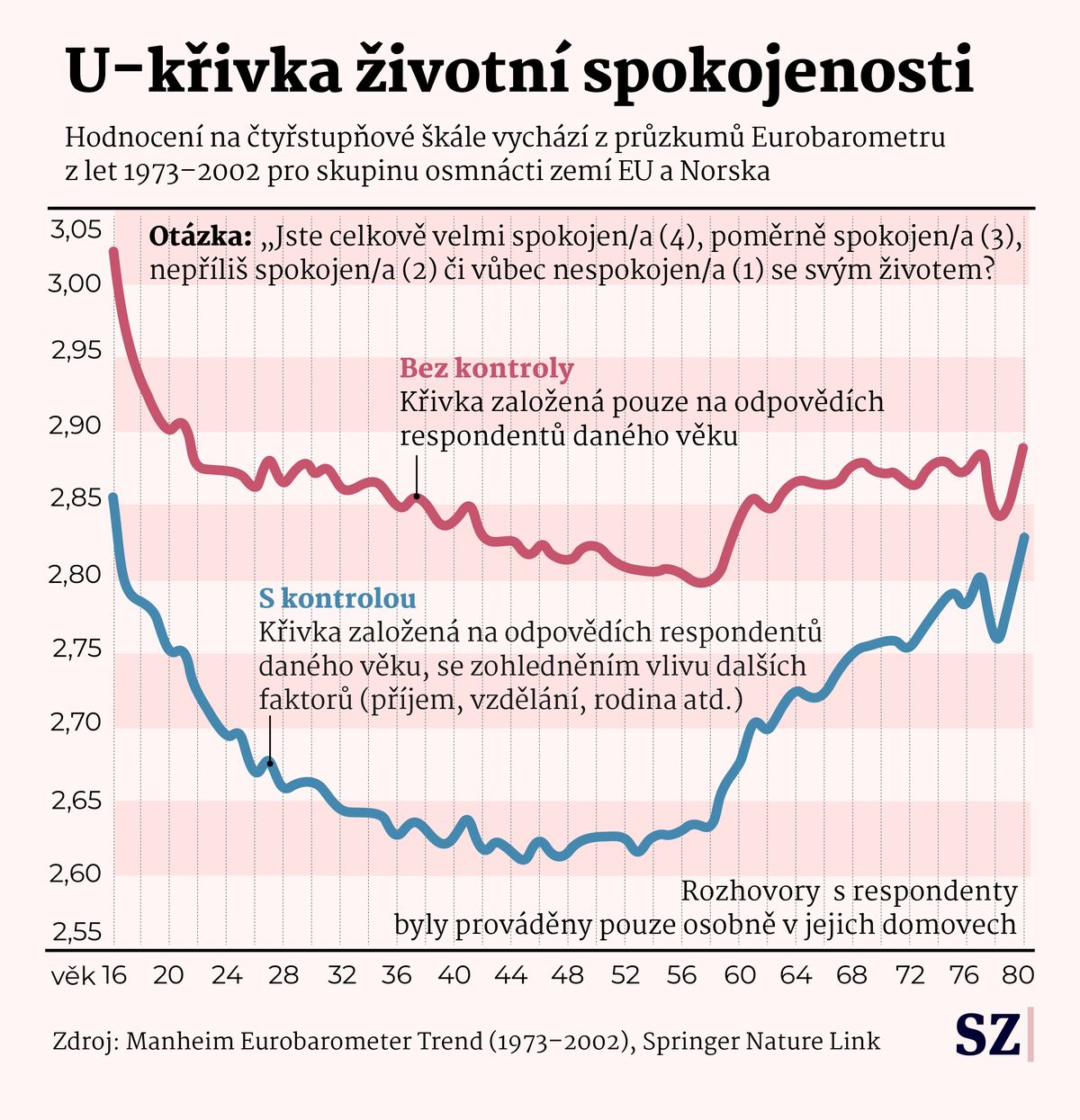 Životní spokojenost se po desetiletí řídila předvídatelným scénářem. Byla jako písmeno U - tedy vysoká v mládí, poté klesala ke dnu ve středním věku a nakonec se ve stáří opět zvedala. Mládí se tak zdálo být synonymem bezstarostnosti a optimismu. Jenže tento zavedený vzorec se v posledních letech začal v mnoha vyspělých zemích rozpadat.