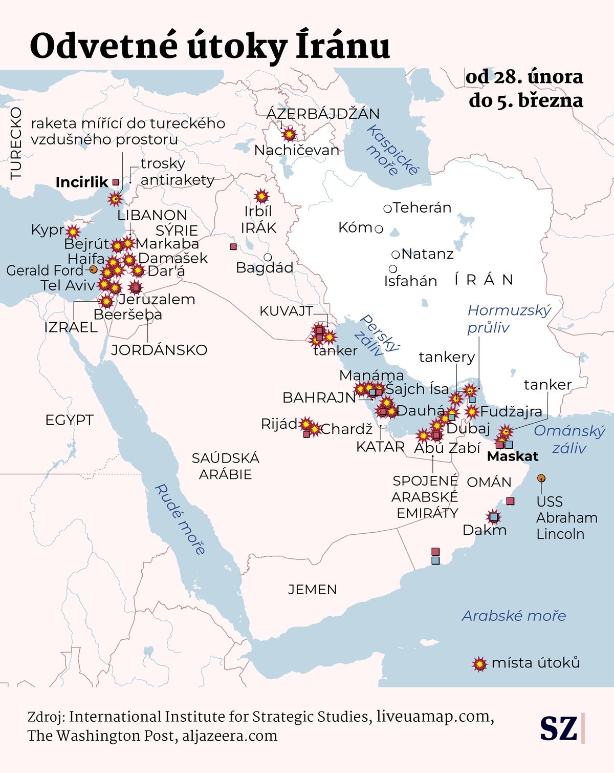Kde Írán a jeho spojenci útočili.
