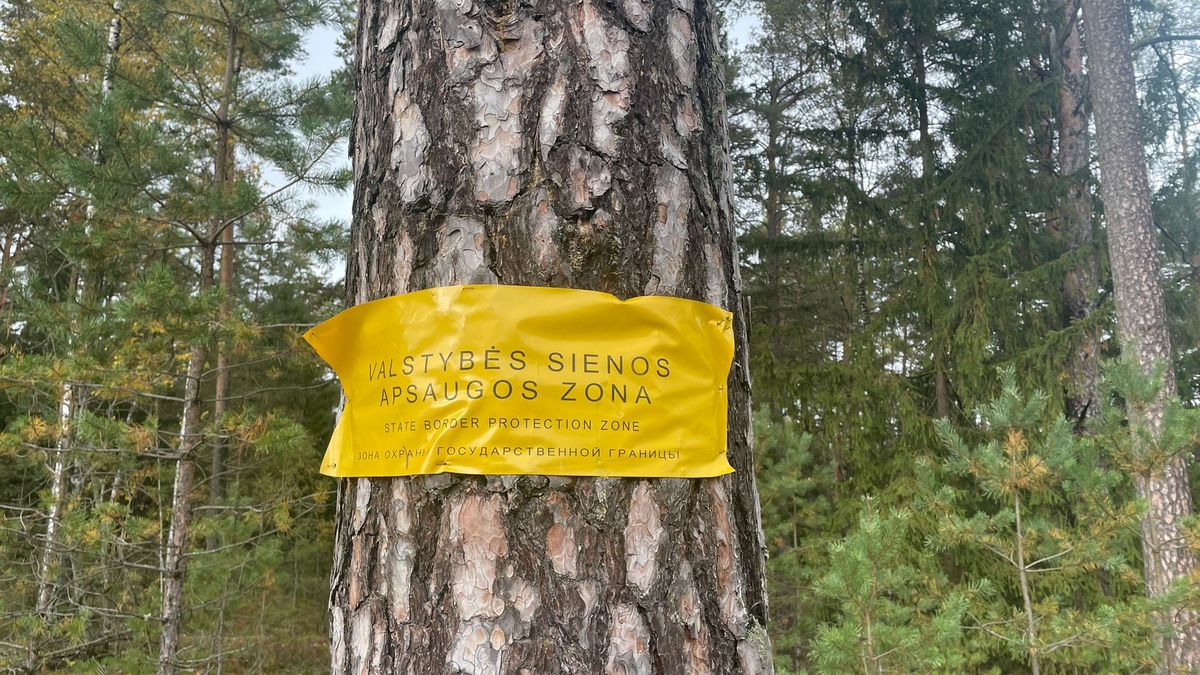 Nedaleko běloruské hranice jsou cedule varující před přechodem.