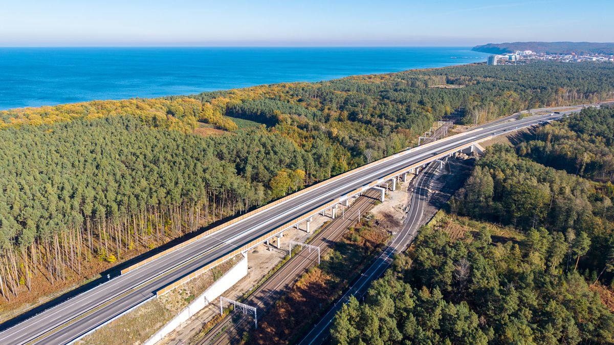 Výstavba 8,5 kilometru dlouhého úseku se v kopcovitém terénu protáhla na šest let. Součástí jsou dva tunely a pět estakád. Premiér i média o trase mluví jako o nejhezčí v Polsku.