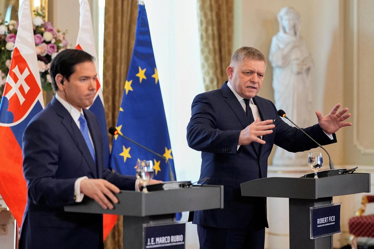 Slovenský premiér Robert Fico s americkým ministrem Marcem Rubiem.