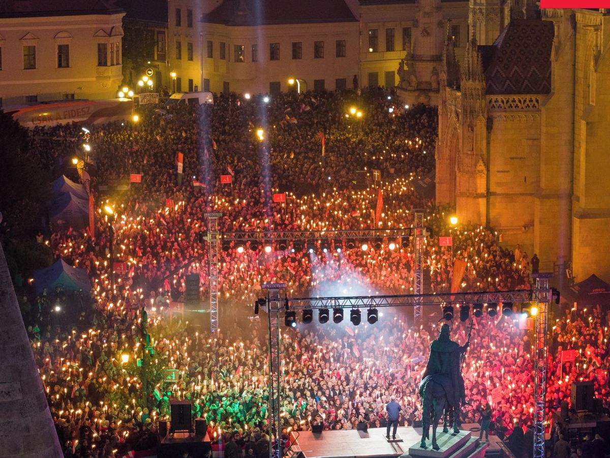 Ve stejnou dobu zakončila svou kampaň i vládnoucí strana Fidesz Viktora Orbána. Na vrchu nad Dunajem, v kulisách Budínského hradu a před osvětlenou Rybářskou baštou, se sešly tisíce jejích příznivců.