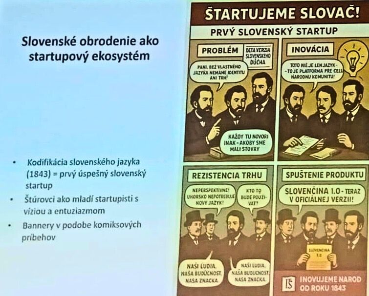 „První věc, co si myslím, že by měla být základem toho muzea, je vystavovat takovéto bannery komiksového charakteru, které by prezentovaly štúrovce jako startupisty,“ dodal spolupracovník slovenského ministerstva kultury na konferenci k představení konceptu nového Muzea národního obrození.