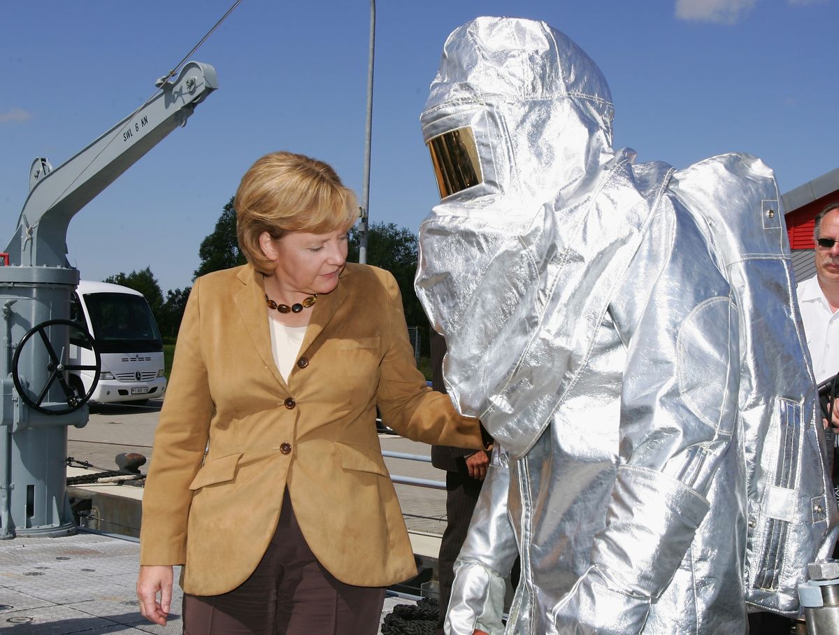 Oblast, kterou Německo nezanedbalo. Kancléřka Merkelová při výcviku posádky minolovky.