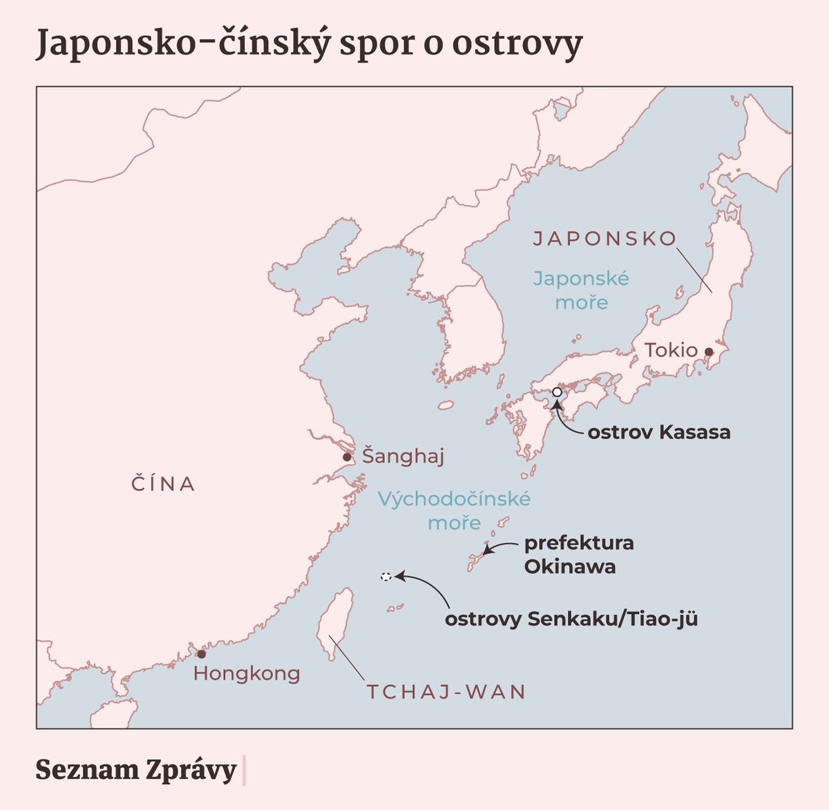 Ostrovy Senkaku a Kasasa na mapě.