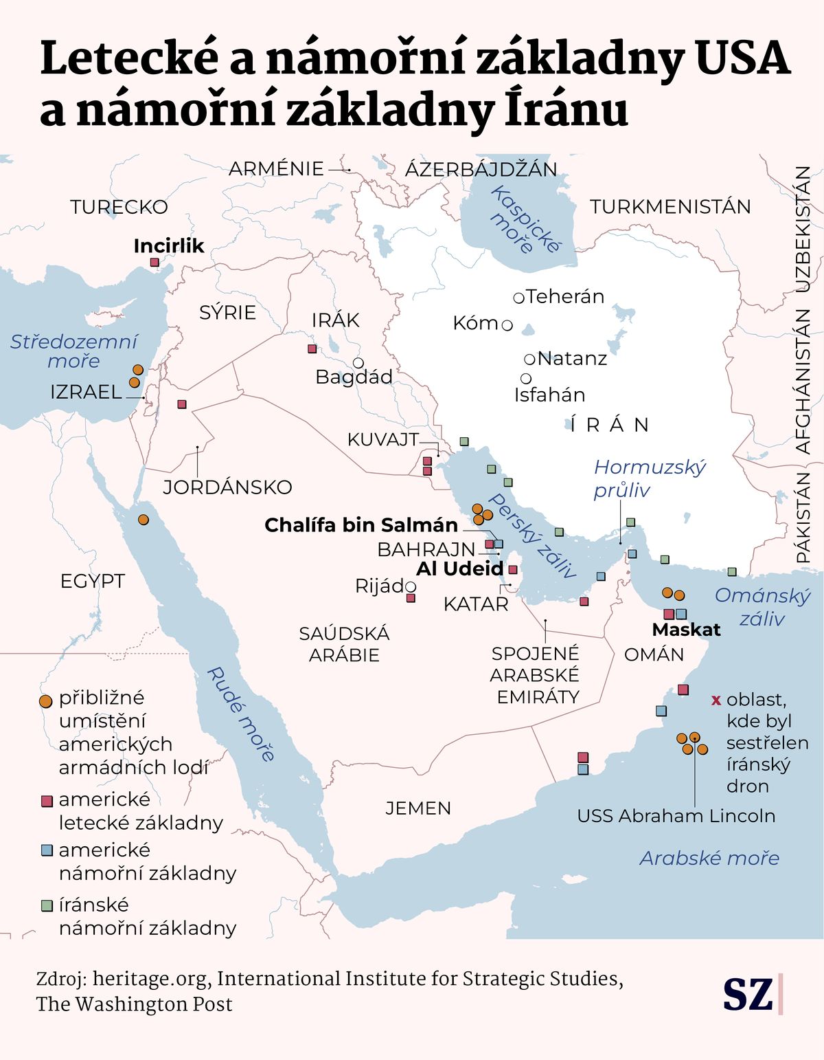 Základny USA na Blízkém východě.