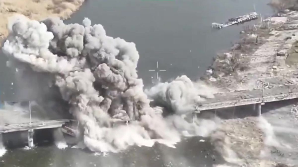 Ukrajinci provedli důmyslný úder. Záběry ukazují zničení mostu v držení Rusů