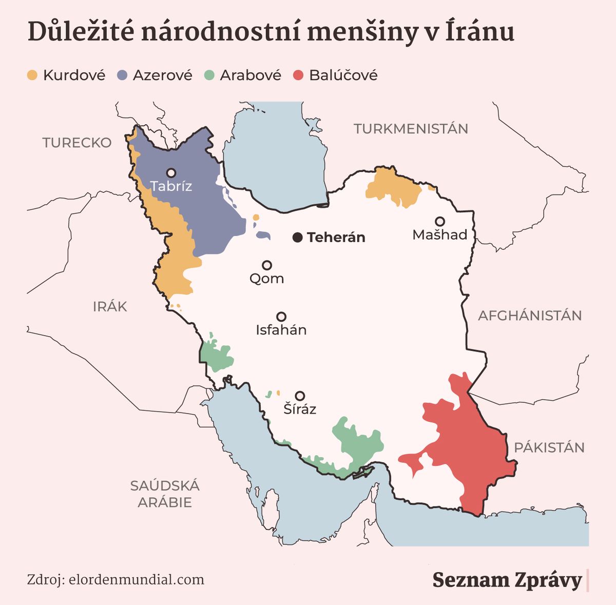 Důležité národnostní menšiny v Íránu.