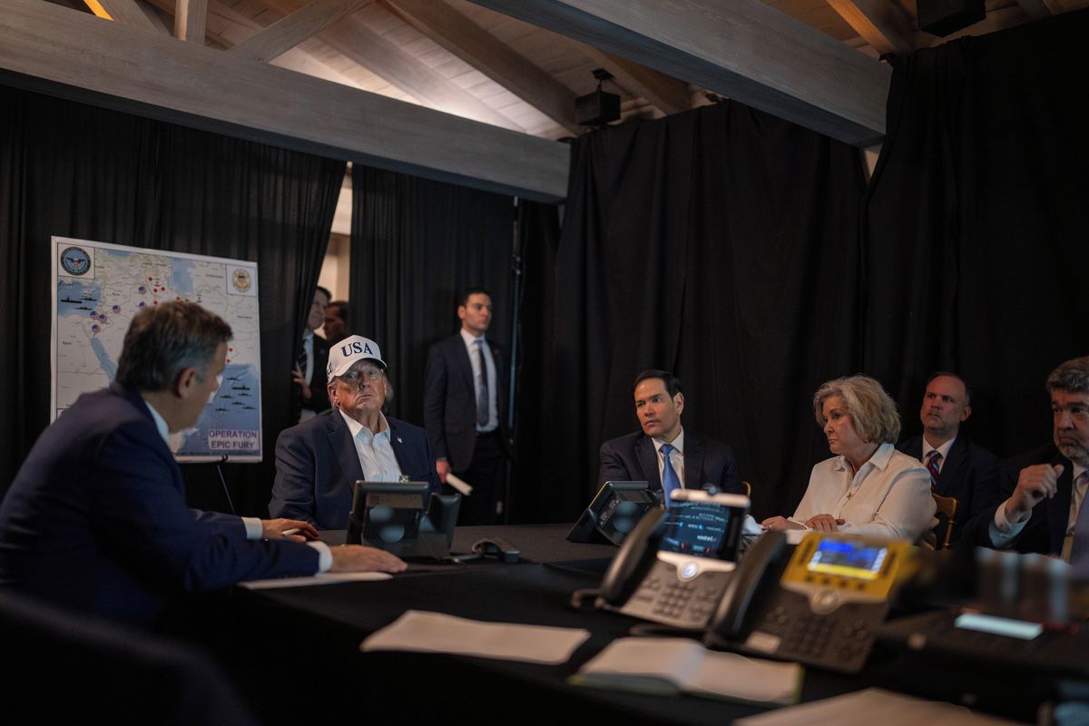 Donald Trump a jeho tým v den zahájení americko-izraelské války proti Íránu v situační místnosti v Trumpově sídle Mar-a-Lago na Floridě, 28. února 2026.