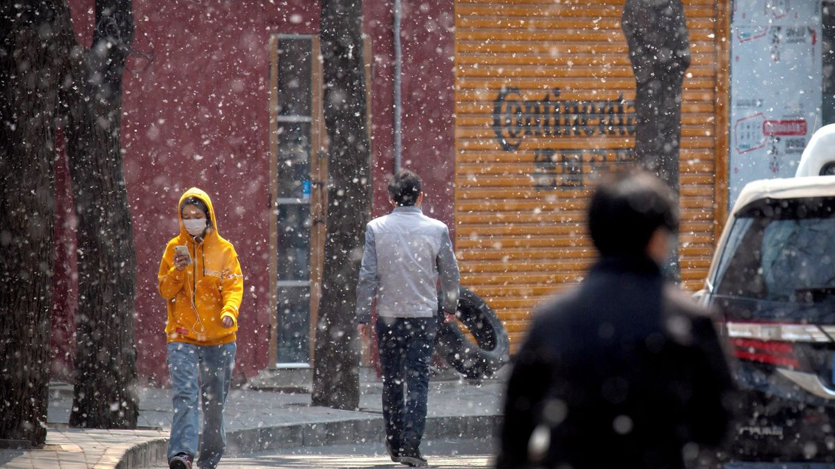 Záběry z roku 2021: Silný vítr a písek zahalil sever Číny včetně metropole Pekingu do oranžové mlhy a snížil viditelnost na minimum. Video: AP
