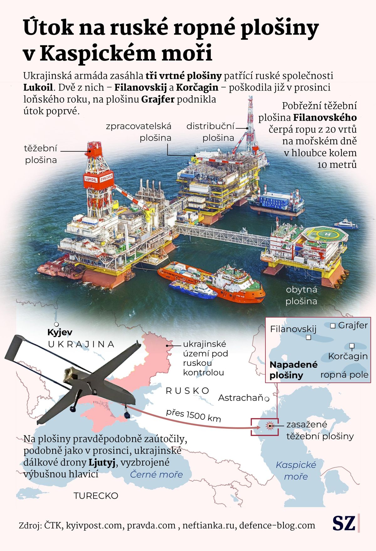 Na začátku ledna ukrajinská armáda zasáhla také tři vrtné plošiny v Kaspickém moři, které patří ruské společnosti Lukoil. S odvoláním na ukrajinský generální štáb o tom informoval server Ukrajinska Pravda.