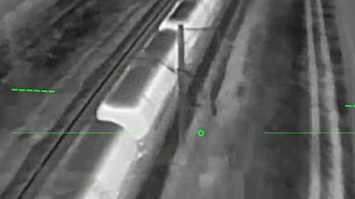 Podle prohlášení, o němž informovala ukrajinská média, bezpilotní drony zasáhly vlak převážející palivo pro ruské jednotkyVideo: x.com/wartranslated