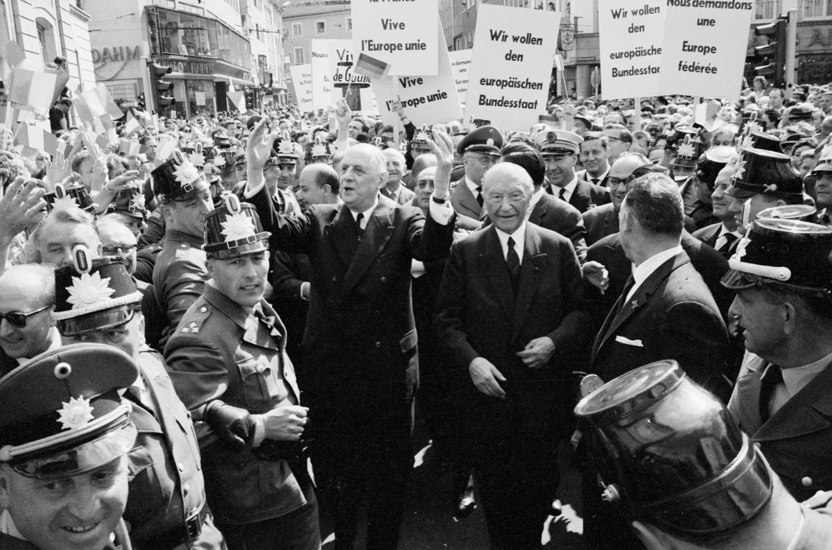 Geopolitická revoluce. Konrád Adenauer po boku francouzského prezidenta Charlese de Gaulla.