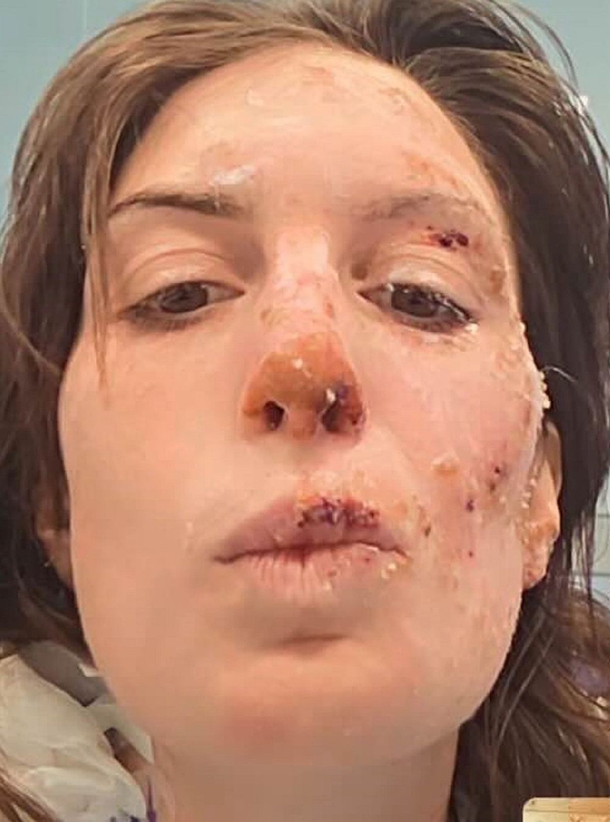 S popáleninami vyvázla z baru i Palmieriová, která o necelý měsíc později sdílela záběry svého zjizveného obličeje a ovázaných rukou.