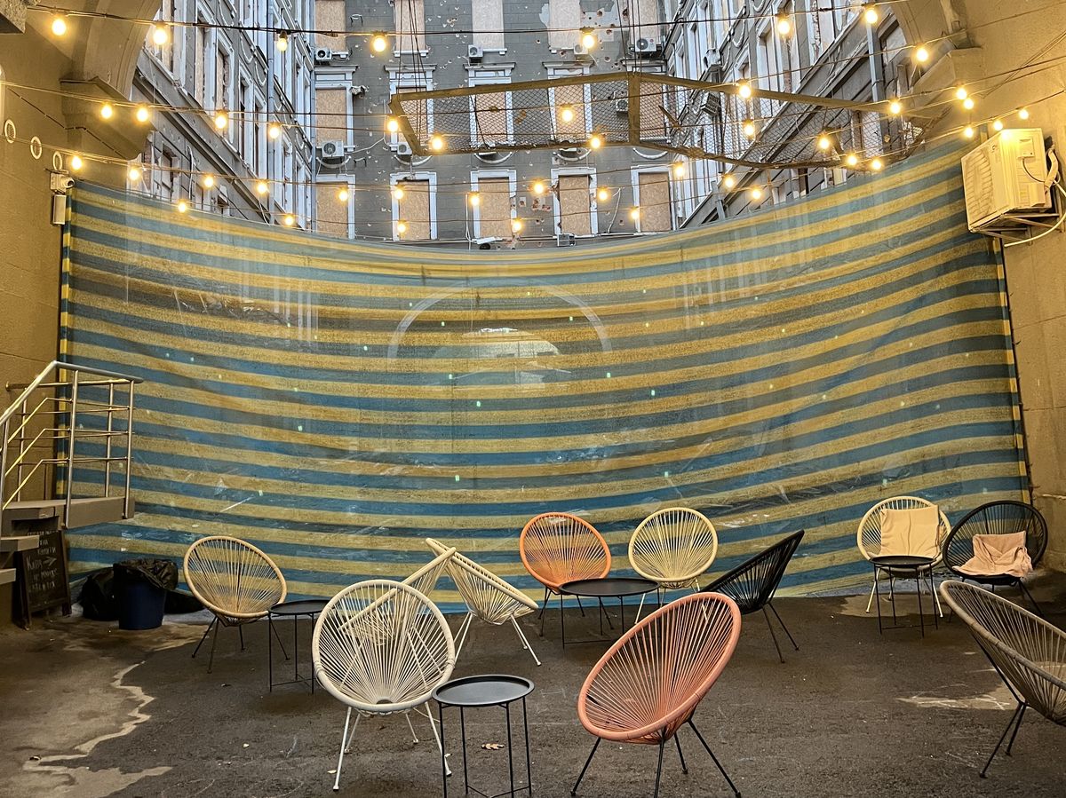 Asi nejslavnější zdejší kavárnou je podnik 1654, nazvaný podle roku, kdy kozáci Charkov založili. Naproti je skromnější podnik, který se jmenuje Káva pro duši. Za ním je dvůr s vybombardovaným domem, a tak majitelé prostě za stolky natáhli závěs. A kávu vaří dál.