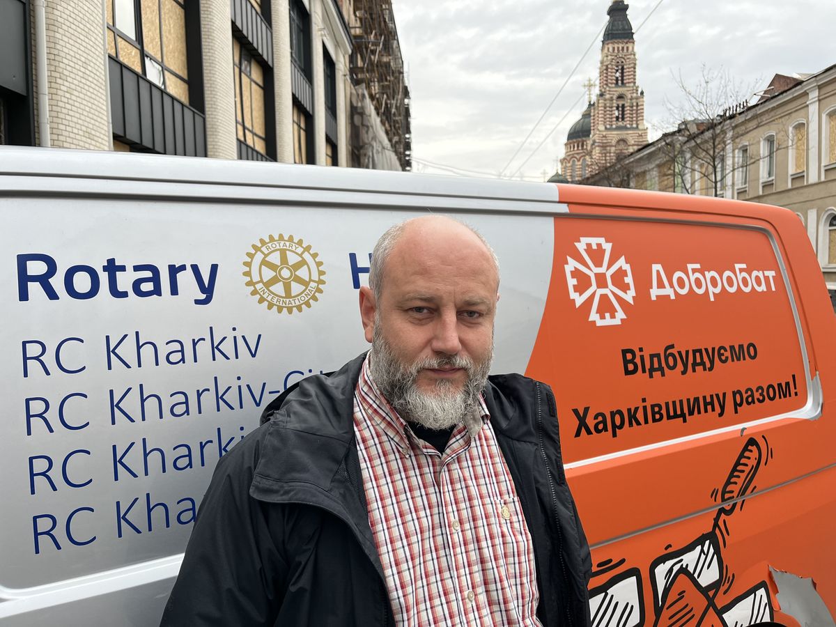 Před školkou se setkávám s prezidentem charkovského Rotary Clubu Pavlem Filipenkem. Byl tu i v onen osudný den. Exploze mu zdemolovala automobil a viděl, jak o život přišel pracovník komunálních služeb, který zrovna projížděl kolem s vozíkem na čištění ulice.