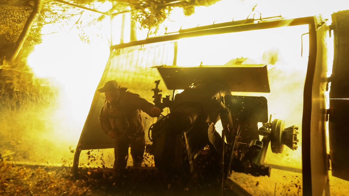 Ukrajinský voják vypaluje z houfnice poblíž Kupjansku.