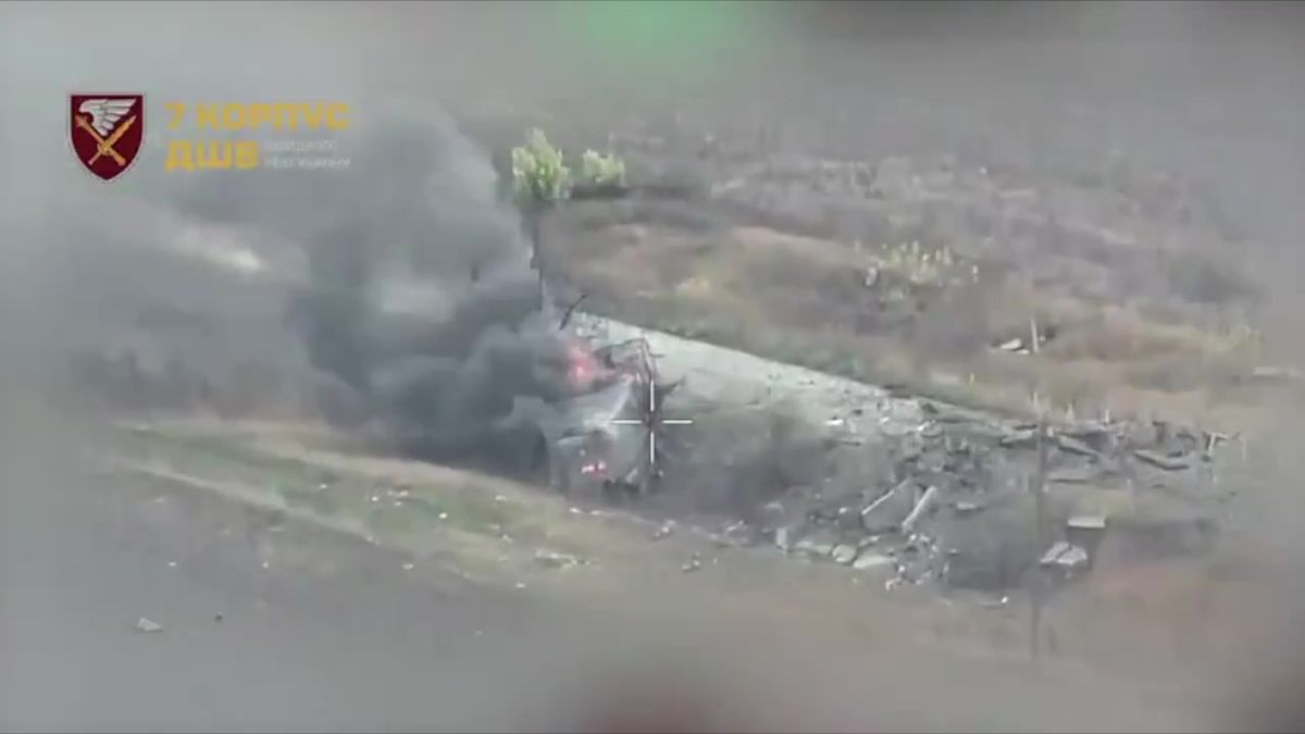 Ukrajinské jednotky odrazily ruský mechanizovaný útok na okraji Myrnohradu nedaleko Pokrovsku.Video: facebook/7CorpsDSHV