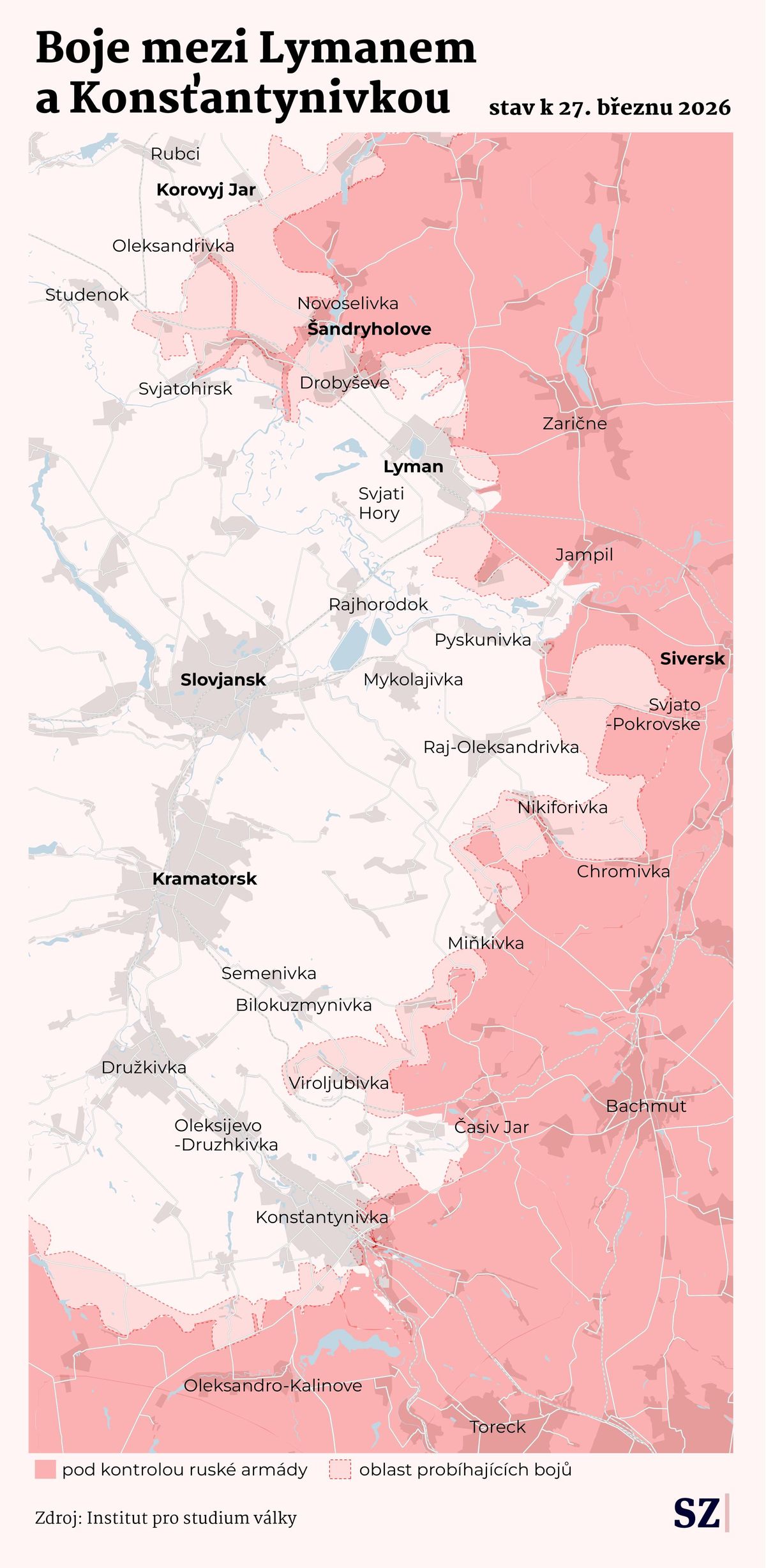 Důležitější než samotná bitva je kontext. Mašovec vidí lymanský směr jako současnou prioritu velení ruského Západního vojenského okruhu — a tedy jako součást příprav na ofenzivu proti Slovjansku a Kramatorsku. Právě tady se podle jeho analýzy soustřeďují nově přisunuté síly.