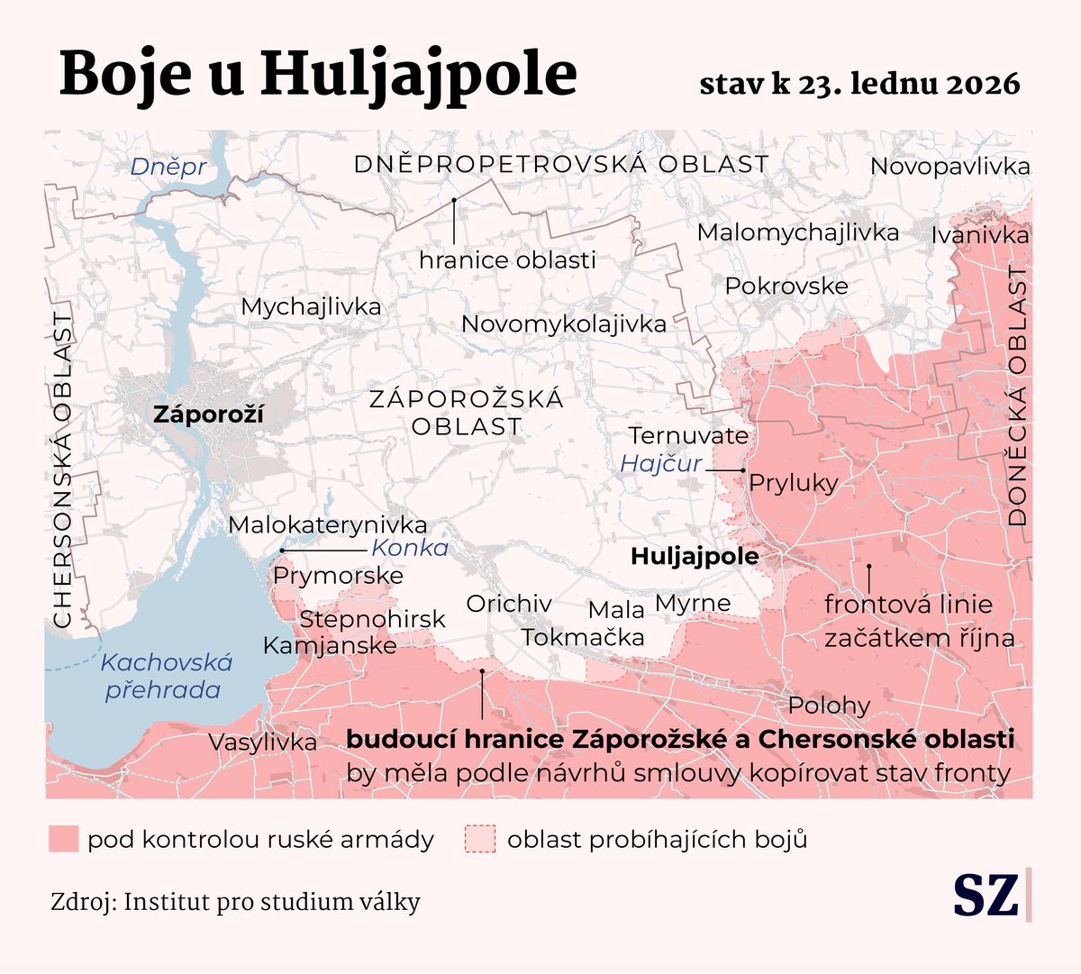 Přibližná situace kolem Huljapole k 23. lednu 2026