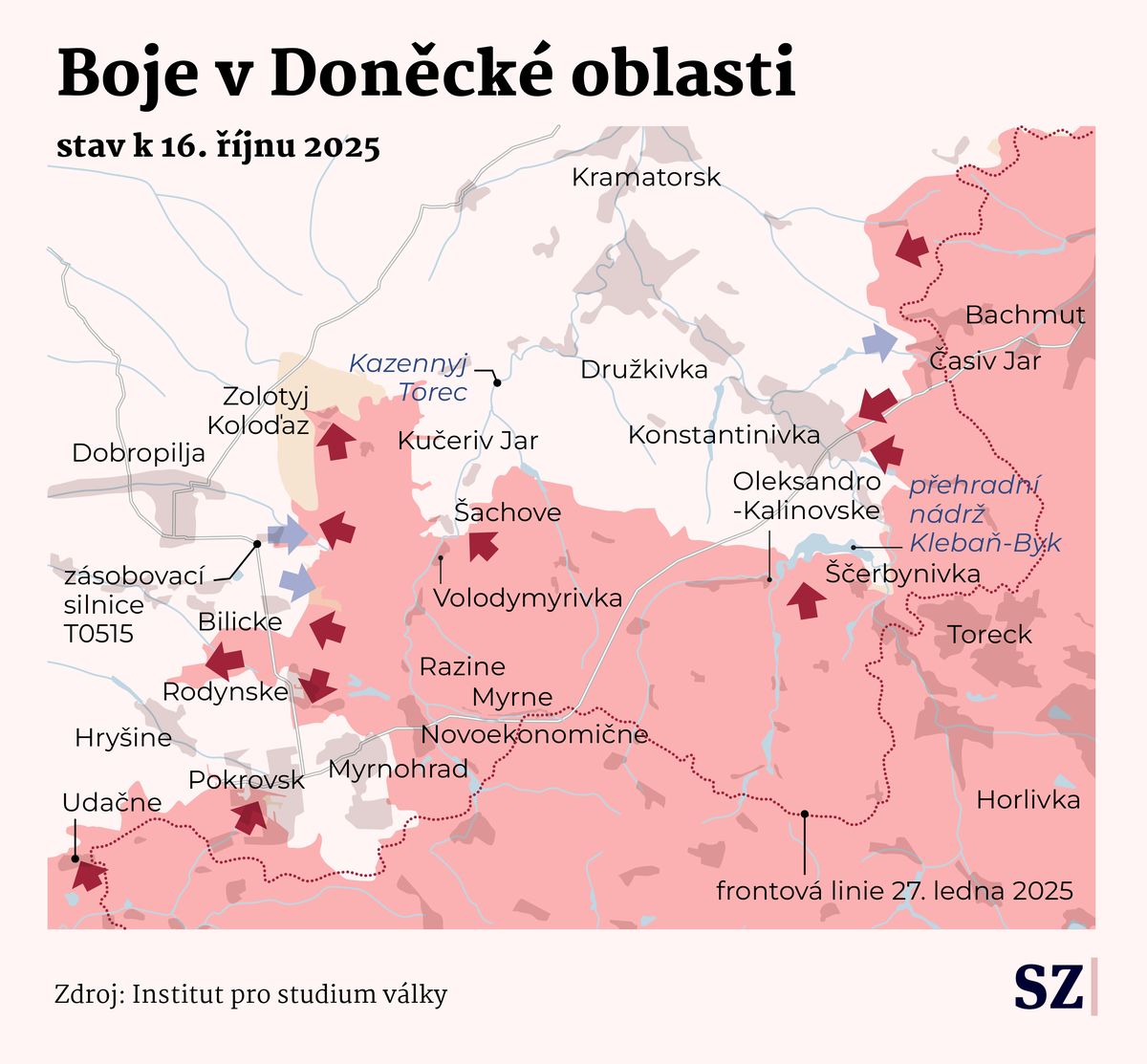 Důvod je zřejmý: Ukrajinská obrana je tu slabší a ruské síly zde v posledním měsíci zaznamenaly největší postup.